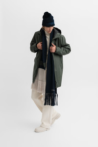 Fringe Scarf is a long rib-knitted scarf for men and women in super soft merino wool. Extra long fringes and colour-block stripes add charm to this perfect accessory to go with your waterproof STUTTERHEIM coat on cold weather days. GARMENT DETAILS - 9gg knitted rib - Unisex style - Colour-block stripes - Extra long - Long fringes - Embroidered STUTTERHEIM logo - 240cm x 26cm / 94.5” x 10.24” - Designed in Stockholm - Made in Europe MATERIAL 100% Merino wool