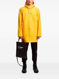 hooded raincoat Highlights - Yellow - Front press-stud fastening - Drawstring hood - Two side welt pockets Imported Composition Lining: Cotton 52%, Polyester 48% Outer: PVC 100%