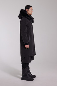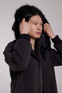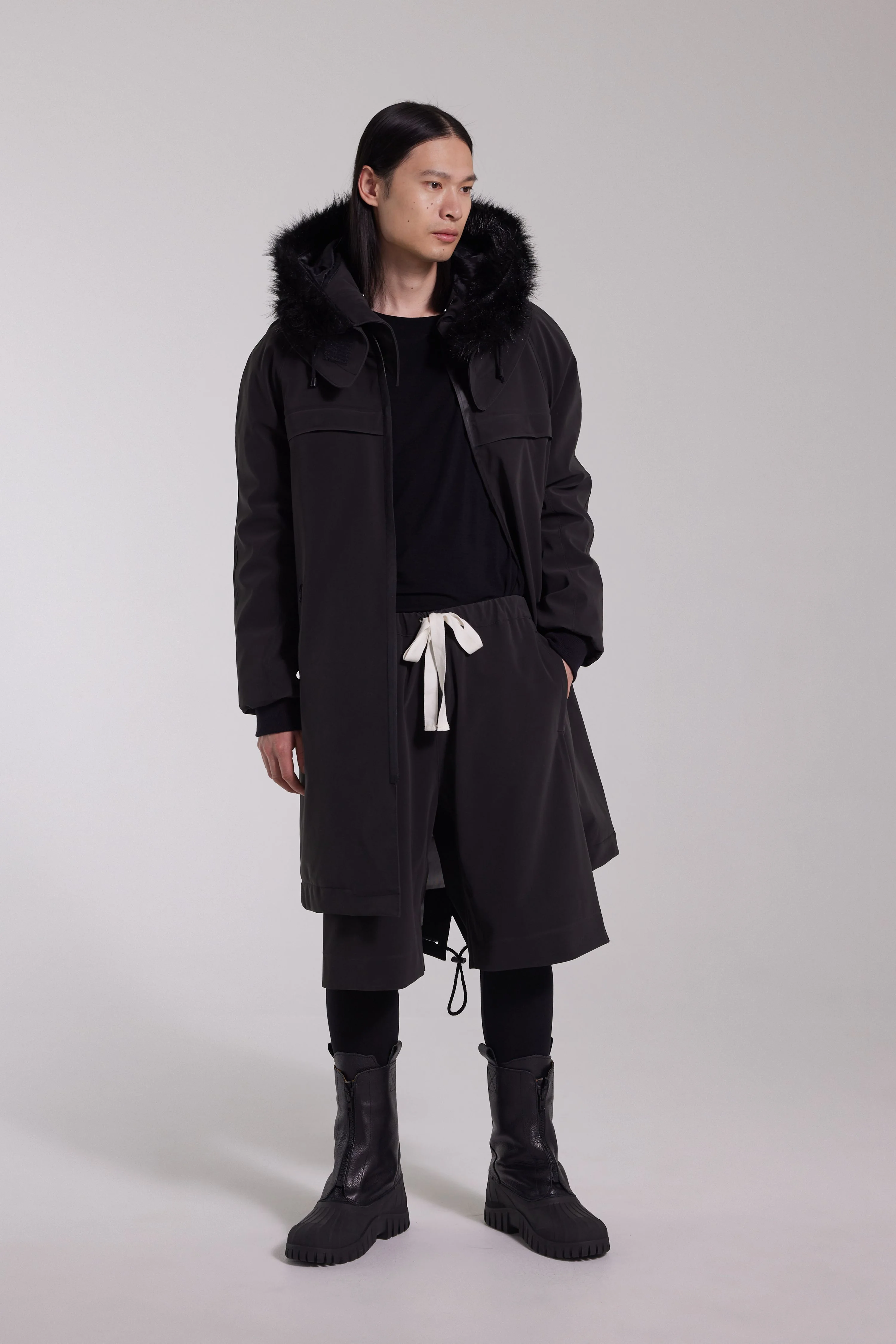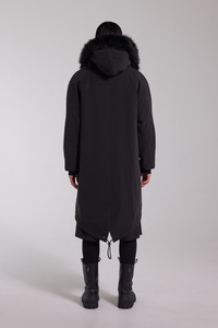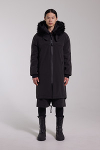 Kalix is a straight-fitting fishtail parka in sturdy and hard-wearing waterproof fabric. It’s insulated with padding for warmth during the winter season. Expertly made, this warm rain jacket is tailored with double-welded seams for complete protection against wet and cold weather. The detachable and adjustable collar and hood with a faux fur brim add extra comfort and warmth to the style. The model is 184 cm / 6′ 1″ Wearing → SIZE M GARMENT DETAILS • Midweight 280-gram shell fabric • Matte-textured finish • Completely waterproof • 150-gram technical insulator filling • Polyester lining • Straight unisex fit • Knee-length • Adjustable drawstring fishtail back detail • Aqua guard zipper • Detachable hood with faux fur brim • Adjustable toggles and overlapping velcro front closure on hood • Knitted wristlets • Fleece-lined side pockets • Fleece-lined inner pocket • Double-welded seams • +20 000 mm water column pressure • Designed in Stockholm • Made in Europe MATERIAL Coating: 100% PVC rubberized coating Membrane: 100% polyester Lining: 100% polyester with poly filling Faux fur: 100% polyester Read more about our fabrics