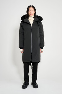 Kalix is a straight-fitting fishtail parka in sturdy and hard-wearing waterproof fabric. It’s insulated with padding for warmth during the winter season. Expertly made, this warm rain jacket is tailored with double-welded seams for complete protection against wet and cold weather. The detachable and adjustable collar and hood with a faux fur brim add extra comfort and warmth to the style. The model is 184 cm / 6′ 1″ Wearing → SIZE M GARMENT DETAILS - Midweight 280-gram shell fabric - Matte-textured finish - Completely waterproof - 150-gram technical insulator filling - Polyester lining - Straight unisex fit - Knee-length - Adjustable drawstring fishtail back detail - Aqua guard zipper - Detachable hood with faux fur brim - Adjustable toggles and overlapping velcro front closure on hood - Knitted wristlets - Fleece-lined side pockets - Fleece-lined inner pocket - Double-welded seams - +20 000 mm water column pressure - Designed in Stockholm - Made in Europe MATERIAL Coating: 100% PVC rubberized coating Membrane: 100% polyester Lining: 100% polyester with poly filling Faux fur: 100% polyester Read more about our fabrics