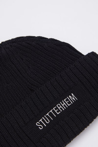 Logo Beanie is the perfect autumn and winter accessory to top off your waterproof STUTTERHEIM outfit. This rib-knitted hat in a classic unisex style is made from super soft merino wool and has the STUTTERHEIM logo embroidered on the front in a contrasting colour. GARMENT DETAILS - 9gg knitted rib - Unisex style - Contrast colour embroidered logo on brim - Designed in Stockholm - Made in Europe MATERIAL 100% Merino wool