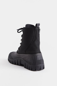 Patrol Boots are modern duck boots made for urban usage. Stylish as well as practical — a perfect trans-seasonal shoe suitable in spring and autumn, as well as winter when paired with warm socks or an added thermo sole. Constructed with a Cordura upper which has been treated to be water-repellent and a galosh-style duck sole, you can rest assured that your feet will be kept dry. The rubber lug sole ensures a firm grip on slippery ground and the padded ankle-length shaft adds warmth and comfort on days you need it the most. GARMENT DETAILS - Waterproof rubber lug sole - Water-repellent treated woven Cordura upper - Galosh-style duck sole - Rounded shell toe - Ankle-length - Front lace-up fastening - Small logo patch on shaft - Padded ankle - Pull-tab at back - Unisex style - Designed in Stockholm - Made in Europe MATERIAL Upper: 100% nylon Cordura Outsole: Rubber Laces and details: Polyester and metal Read more about our fabrics