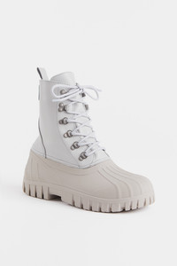 Patrol Boots are modern duck boots made for urban usage. Stylish as well as practical — a perfect trans-seasonal shoe suitable in spring and autumn, as well as winter when paired with warm socks or an added thermo sole. Constructed with a leather upper which has been treated to be water-repellent and a galosh-style duck sole, you can rest assured that your feet will be kept dry. The rubber lug sole ensures a firm grip on slippery ground and the padded ankle-length shaft adds warmth and comfort on days you need it the most. GARMENT DETAILS - Waterproof rubber lug sole - Water-repellent treated leather upper - Galosh-style duck sole - Rounded shell toe - Ankle-length - Front lace-up fastening - Small logo patch on shaft - Padded ankle - Pull-tab at back - Unisex style - Designed in Stockholm - Made in Europe MATERIAL Upper: Vegetable-tanned Italian leather Outsole: Rubber Laces and details: Polyester and metal Read more about our fabrics