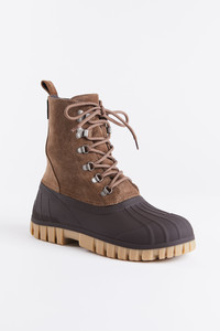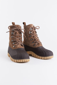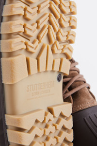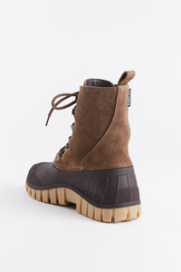 Patrol Boots are modern duck boots made for urban usage. Stylish as well as practical — a perfect trans-seasonal shoe suitable in spring and autumn, as well as winter when paired with warm socks or an added thermo sole. Constructed with a suede upper which has been treated to be water-repellent and a galosh-style duck sole, you can rest assured that your feet will be kept dry. The rubber lug sole ensures a firm grip on slippery ground and the padded ankle-length shaft adds warmth and comfort on days you need it the most. GARMENT DETAILS • Waterproof rubber lug sole • Water-repellent treated suede upper • Galosh-style duck sole • Rounded shell toe • Ankle-length • Front lace-up fastening • Small logo patch on shaft • Padded ankle • Pull-tab at back • Unisex style • Designed in Stockholm • Made in Europe MATERIAL Upper: Vegetable-tanned Italian suede Outsole: Rubber Laces and details: Polyester and metal Read more about our fabrics