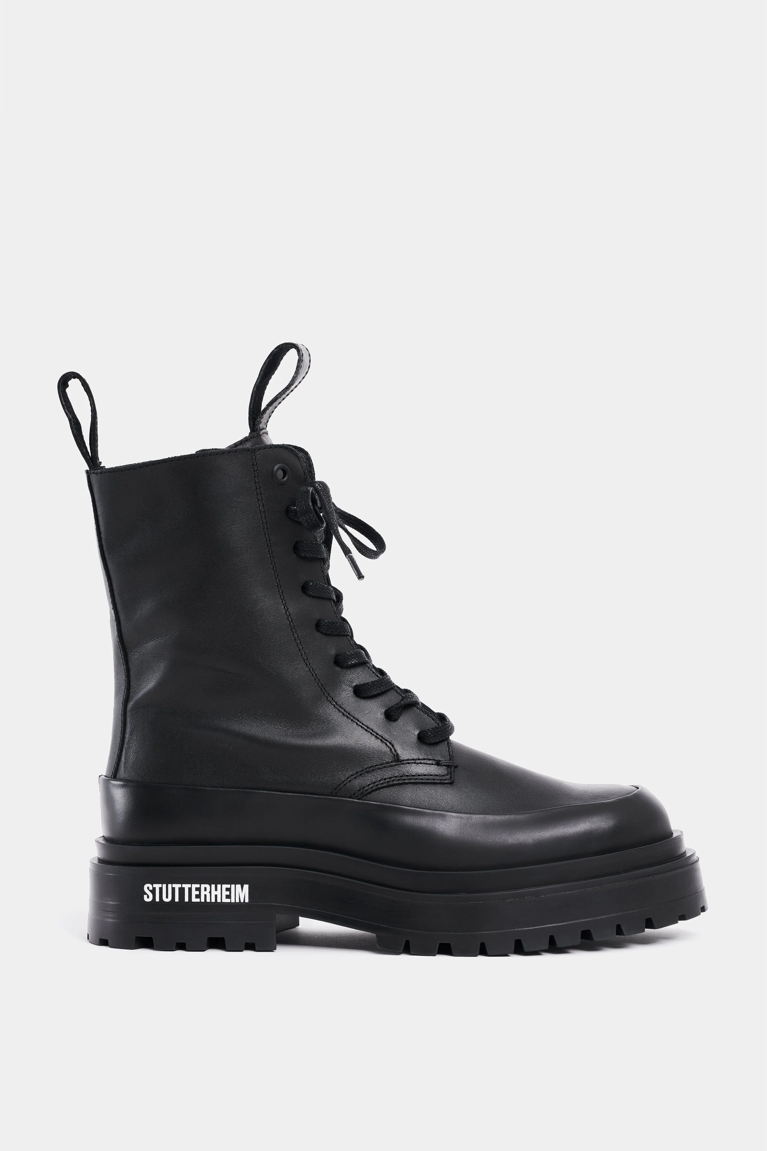The Peace Walker boots are lace-up mid-calf boots perfect for the colder seasons. A classic style that looks equally good on men and women, they will elevate any outfit and pair perfectly with a raincoat or winter jacket from STUTTERHEIM. Crafted in the finest quality leather, these comfortable boots will stand the test of time while the waterproof lug sole and rubber rim ensure protection from leakage and wet feet. The 9-hole lace-up fastening provides the classic look while the side zip and pull tabs make the boots easy to pull on and off. GARMENT DETAILS - Waterproof chunky rubber lug sole - Waterproof rubber rim above sole - Mid-calf length - Front 9-hole lace-up fastening - Waxed cotton laces - Zip on inner side of shaft - Double pull tabs at top of shaft - Raised STUTTERHEIM logo on rubber sole exterior - Small nylon logo label on shaft side - Designed in Stockholm - Made in Europe MATERIAL Upper: Vegetable-tanned Italian leather Outsole: Rubber Laces: 100% cotton Read more about our fabrics