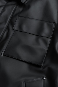 Ringen Winter is an overshirt for men in sturdy waterproof fabric with padding for added warmth. Tailored with double-welded seams, this relaxed-fitting jacket is completely weather-secure, keeping both wind and wet out. An ideal trans-seasonal garment, it's perfect on milder winter days or at times when the weather might suddenly change and an extra layer is needed. The model is 187 cm / 6′ 2” Wearing → SIZE L GARMENT DETAILS - Midweight 280-gram shell fabric - Completely waterproof - 150-gram technical insulator filling - Polyester lining - Regular fit - Hidden snap metal buttons on front - Welt pocket at chest - Open side pockets - Classic shirt sleeve cuffs - Debossed logo on collar - +20 000 mm water column pressure - Designed in Stockholm - Made in Europe MATERIAL Coating: 100% PVC rubberized coating Membrane: 100% polyester Lining: 100% polyester with poly filling Read more about our fabrics