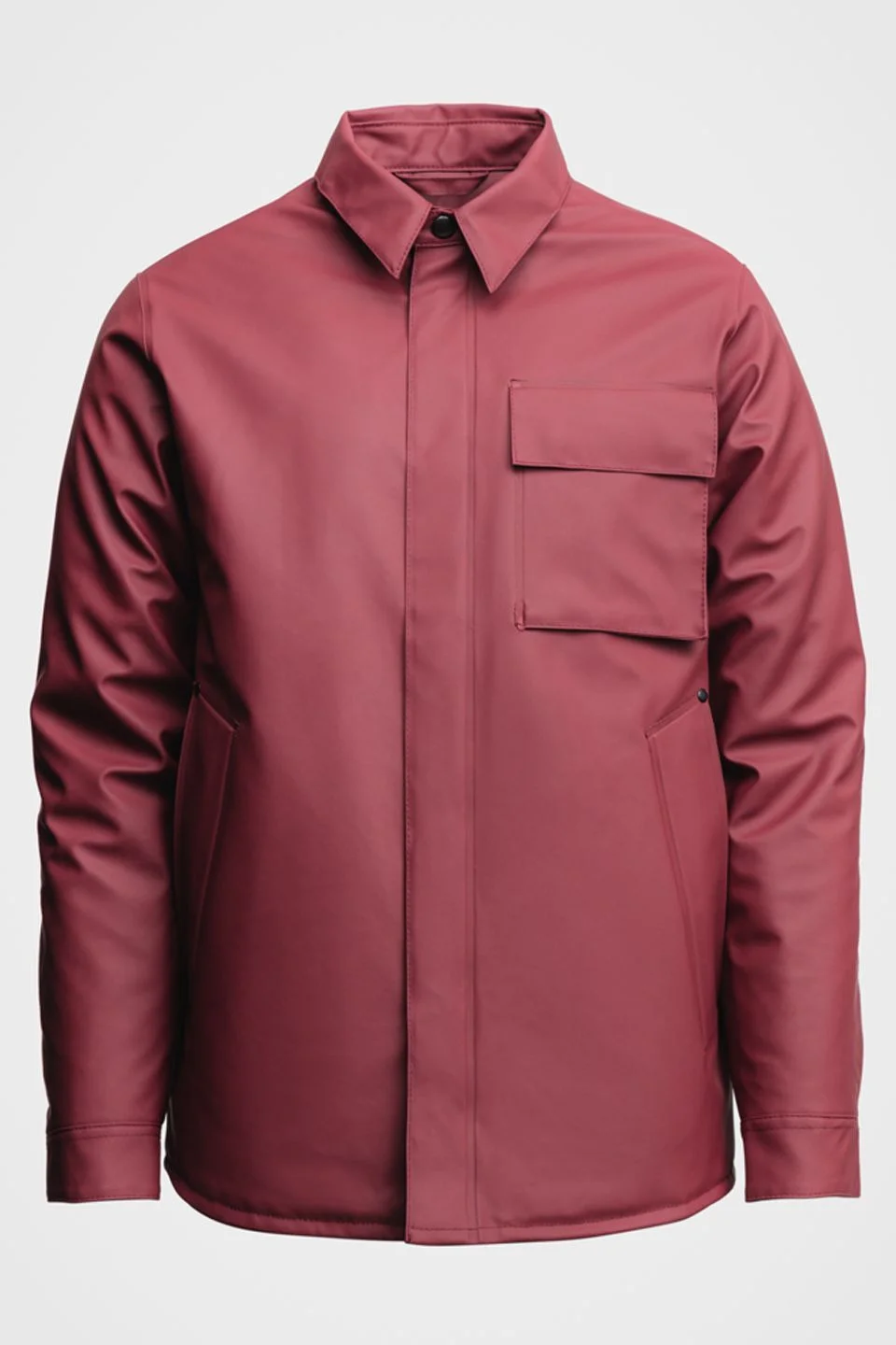 Ringen Winter is an overshirt for men in sturdy waterproof fabric with padding for added warmth. Tailored with double-welded seams, this relaxed-fitting jacket is completely weather-secure, keeping both wind and wet out. An ideal trans-seasonal garment, it's perfect on milder winter days or at times when the weather might suddenly change and an extra layer is needed. The model is 187 cm / 6′ 2” Wearing → SIZE L GARMENT DETAILS - Midweight 280-gram shell fabric - Completely waterproof - 150-gram technical insulator filling - Polyester lining - Regular fit - Hidden snap metal buttons on front - Welt pocket at chest - Open side pockets - Classic shirt sleeve cuffs - Debossed logo on collar - +20 000 mm water column pressure - Designed in Stockholm - Made in Europe MATERIAL Coating: 100% PVC rubberized coating Membrane: 100% polyester Lining: 100% polyester with poly filling Read more about our fabrics