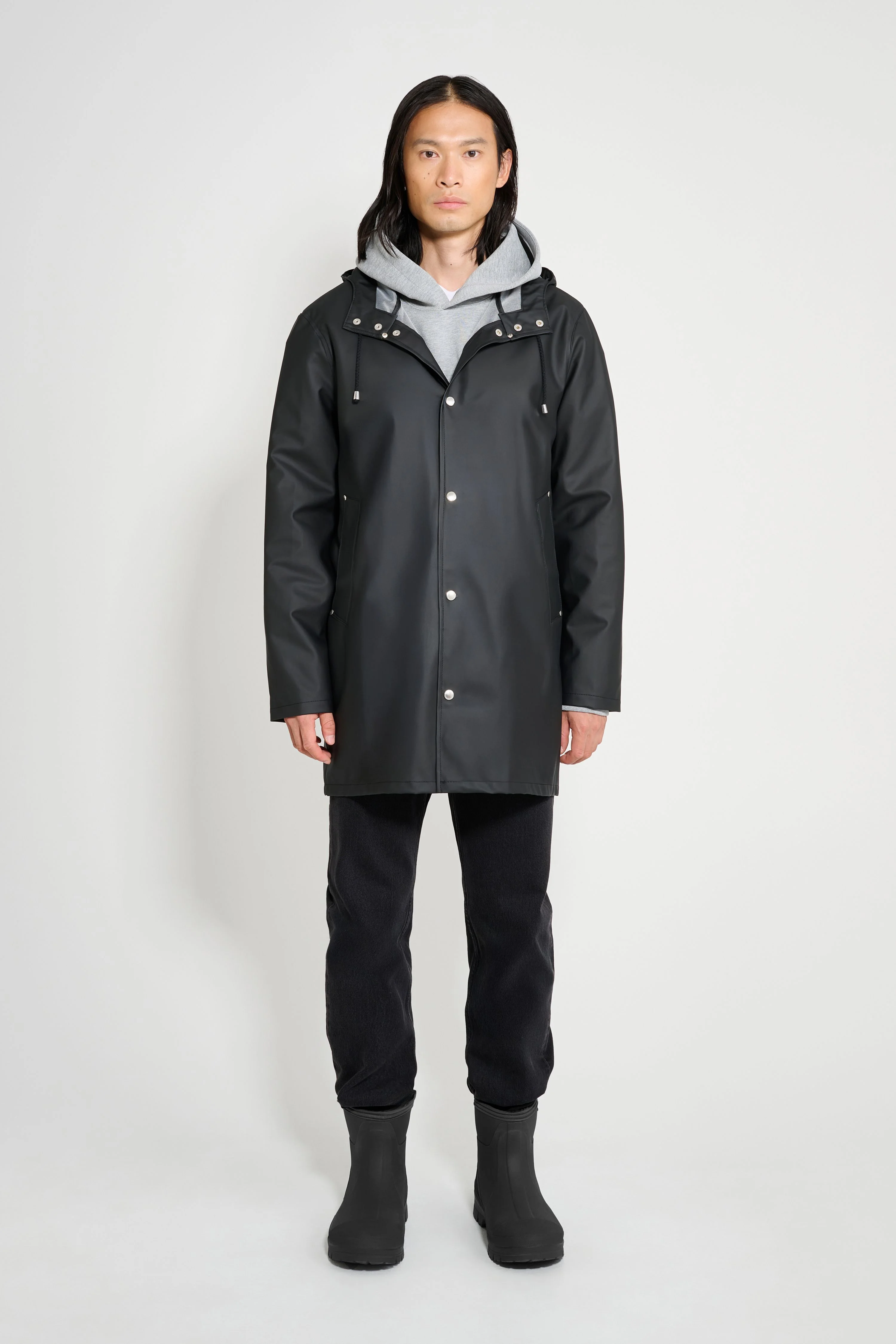 Stockholm Lightweight is a straight-fit raincoat in ultra-light waterproof fabric. Expertly made, it’s tailored with double-welded seams for complete protection against the rain. The drawstring hood and under-arm eyelets add ease of movement and comfort in uncomfortable weather. The thin and packable fabric makes this garment perfect when on the go. The model is 184 cm / 6′ 1″ Wearing → SIZE M GARMENT DETAILS - Lightweight 230-gram fabric - Packable - Completely waterproof - Straight unisex fit - Snap metal button closures - Drawstring hood - Open welt pockets - Double welded seams - Under-arm eyelets for ventilation - +20 000 mm water column pressure - Designed in Stockholm - Made in Europe MATERIAL Coating: 100% PVC rubberized coating Membrane: 100% polyester Read more about our fabrics