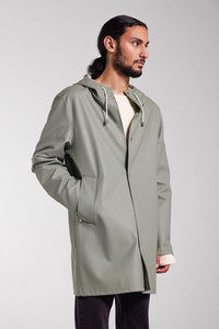 Stockholm Lightweight is a straight-fit raincoat in ultra-light waterproof fabric. Expertly made, it’s tailored with double-welded seams for complete protection against the rain. The drawstring hood and under-arm eyelets add ease of movement and comfort in uncomfortable weather. The thin and packable fabric makes this garment perfect when on the go. The model is 187 cm / 6' 2" Wearing → SIZE M GARMENT DETAILS • Lightweight 230-gram fabric • Packable • Completely waterproof • Straight unisex fit • Snap metal button closures • Drawstring hood • Open welt pockets • Double welded seams • Under-arm eyelets for ventilation • +20 000 mm water column pressure • Designed in Stockholm • Made in Europe MATERIAL Coating: 100% PVC rubberized coating Membrane: 100% polyester Read more about our fabrics