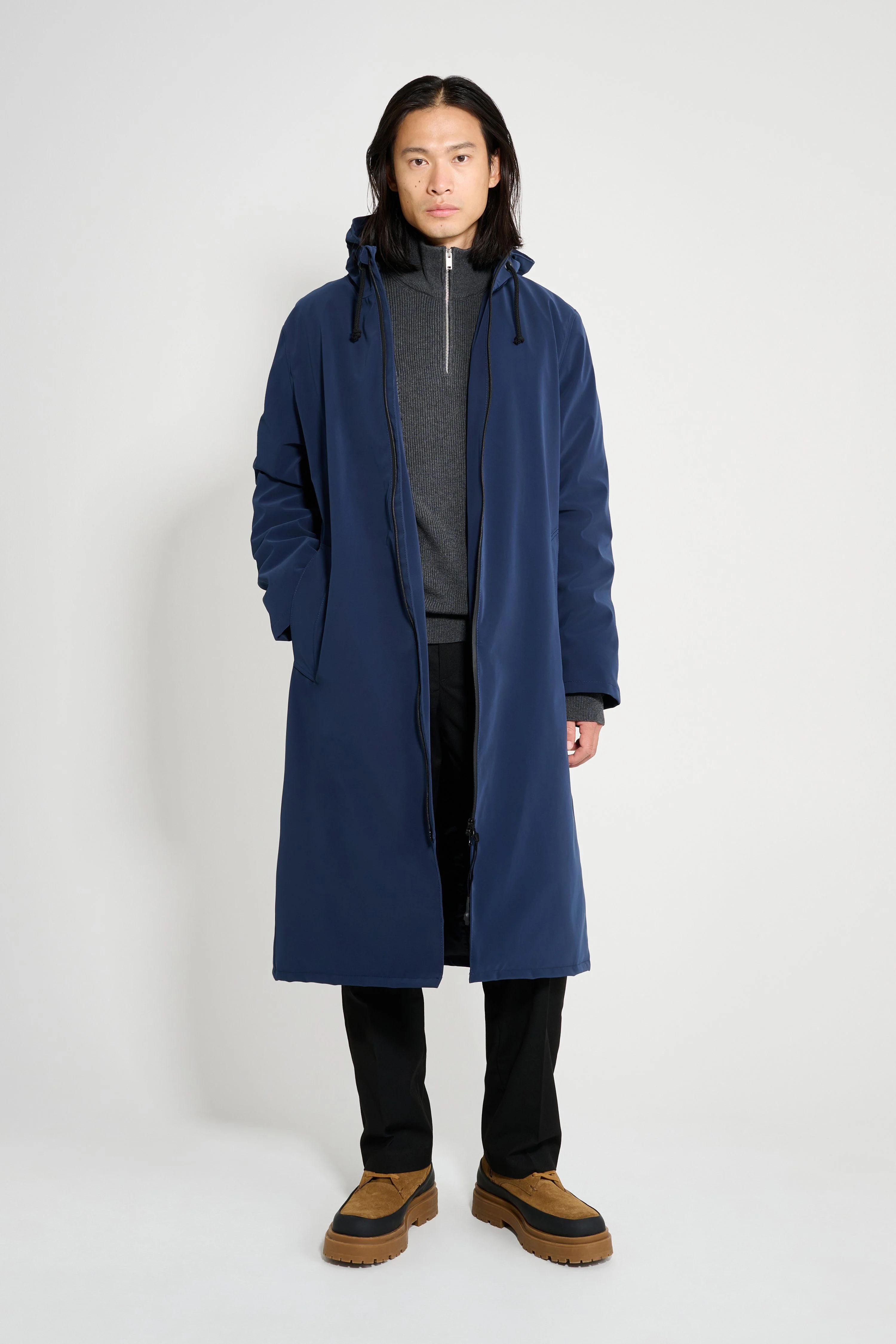 Stockholm Long Winter Matte is a straight-fit knee-length warm raincoat in sturdy and hard-wearing waterproof fabric with a matte-textured finish. It’s insulated with padding for warmth during the winter season. Expertly made, it’s tailored with double-welded seams for complete protection against rain and snow. The drawstring hood and knitted wristlets add ease of movement and comfort in uncomfortable weather. GARMENT DETAILS - Midweight 280-gram shell fabric - Matte-textured finish - Completely waterproof - 150-gram technical insulator filling - Polyester lining - Straight unisex fit - Knee-length - Aqua guard zipper - Nylon logo pull tab - Drawstring hood - Knitted wristlets - Fleece-lined welt side pockets - Fleece-lined inside welt pocket - Double welded seams - +20 000 mm water column pressure - Designed in Stockholm - Made in Europe MATERIAL Coating: 100% PVC rubberized coating Membrane: 100% polyester Lining: 100% polyester with poly filling Read more about our fabrics