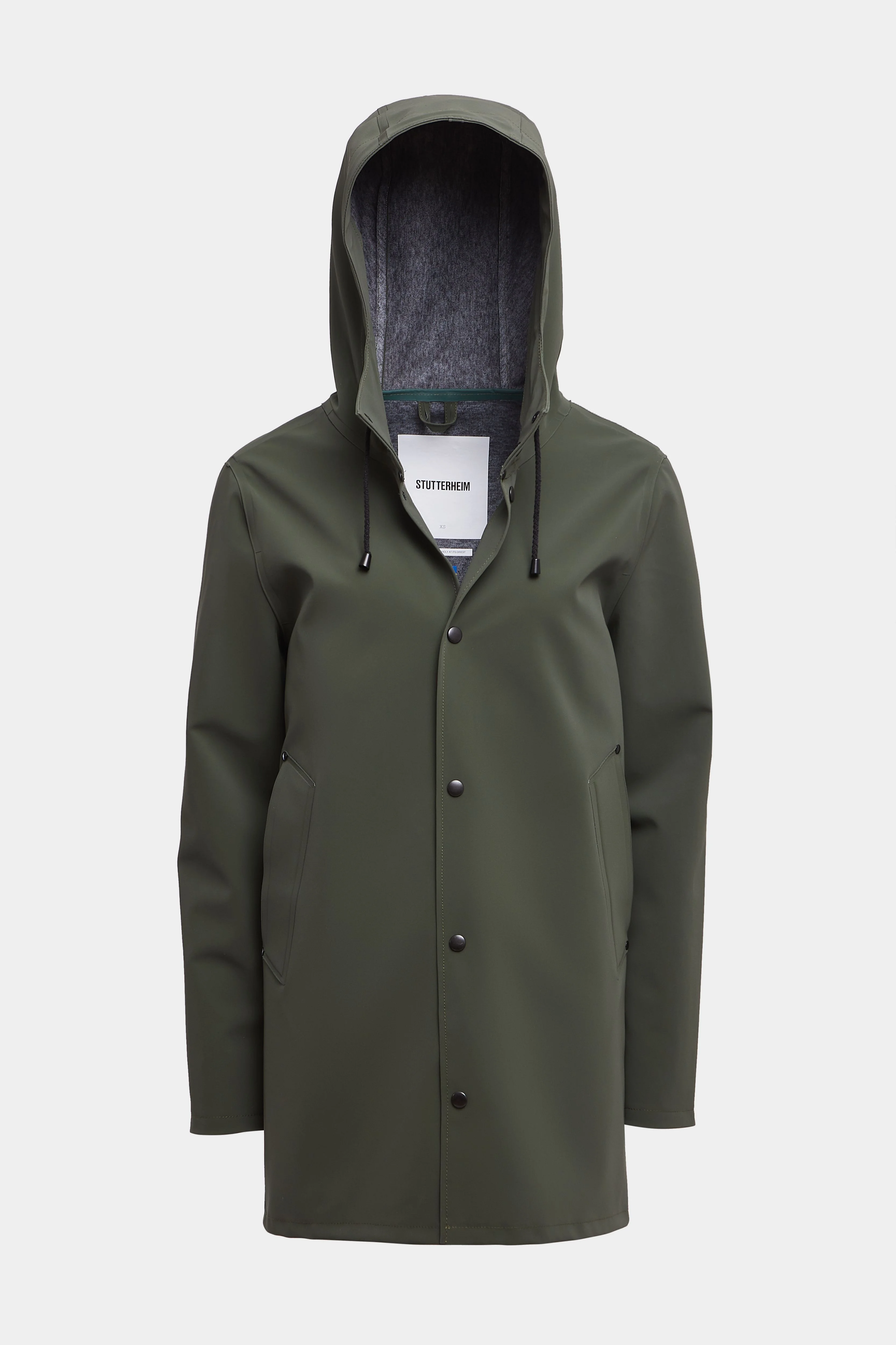 Stockholm Matte is a straight-fit raincoat in a matte textured finish waterproof fabric. Expertly made, it’s tailored with double-welded seams for complete protection against the rain. The drawstring hood and under-arm eyelets add ease of movement and comfort in uncomfortable weather. The model is 187 cm / 6′ 2″ Wearing → SIZE M GARMENT DETAILS • Heavyweight 530-gram fabric • Matte textured finish • Completely waterproof • Straight unisex fit • Snap metal button closures • Drawstring hood • Open welt pockets • Double welded seams • Under-arm eyelets for ventilation • +20 000 mm water column pressure • Designed in Stockholm • Made in Europe MATERIAL Coating: 100% PVC rubberized coating Membrane: 52% cotton, 48% polyester Read more about our fabrics