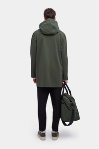 Stockholm Matte is a straight-fit raincoat in a matte textured finish waterproof fabric. Expertly made, it’s tailored with double-welded seams for complete protection against the rain. The drawstring hood and under-arm eyelets add ease of movement and comfort in uncomfortable weather. The model is 187 cm / 6′ 2″ Wearing → SIZE M GARMENT DETAILS - Heavy midweight 380-gram fabric - Matte textured finish - Completely waterproof - Straight unisex fit - Snap metal button closures - Drawstring hood - Open welt pockets - Double welded seams - Under-arm eyelets for ventilation - +20 000 mm water column pressure - Designed in Stockholm - Made in Europe MATERIAL Coating: 100% PVC rubberized coating Membrane: 52% cotton, 48% polyester Read more about our fabrics