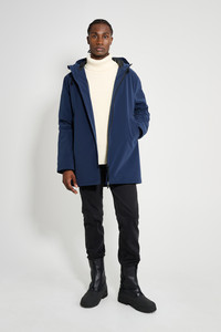 Stockholm Winter Matte is a straight-fit warm raincoat in sturdy and hard-wearing waterproof fabric with a matte-textured finish. It’s insulated with padding for warmth during the winter season. Expertly made, it’s tailored with double-welded seams for complete protection against rain and snow. The drawstring hood and knitted wristlets add ease of movement and comfort in uncomfortable weather. GARMENT DETAILS - Midweight 280-gram shell fabric - Matte-textured finish - Completely waterproof - 150-gram technical insulator filling - Polyester lining - Straight unisex fit - Aqua guard zipper - Nylon logo pull tab - Drawstring hood - Knitted wristlets - Fleece-lined welt side pockets - Fleece-lined inside welt pocket - Double welded seams - +20 000 mm water column pressure - Designed in Stockholm - Made in Europe MATERIAL Coating: 100% PVC rubberized coating Membrane: 100% polyester Lining: 100% polyester with poly filling Read more about our fabrics