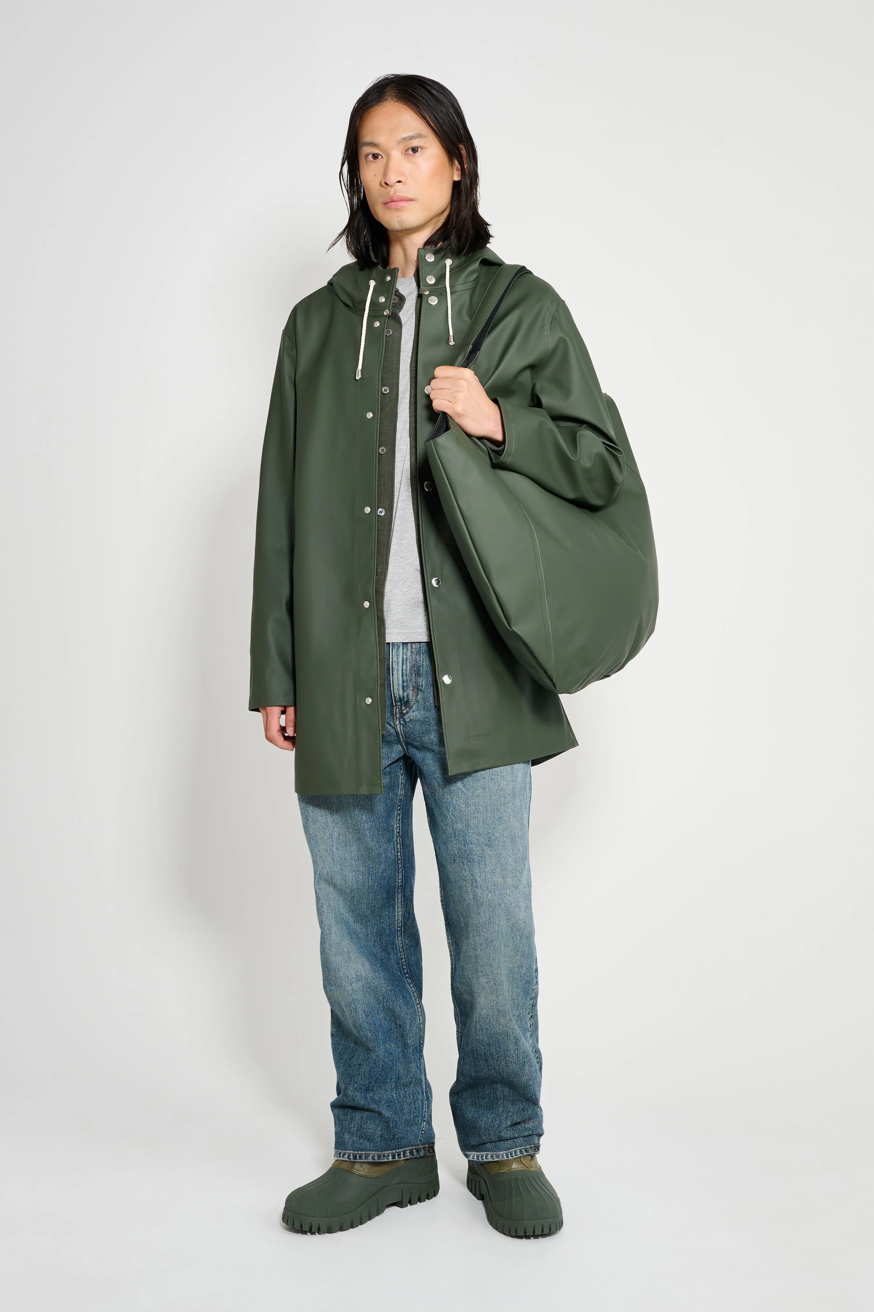 Stockholm, our home and your essential wardrobe staple is a straight-fit raincoat in sturdy and hard-wearing waterproof fabric. Expertly made, it’s tailored with double-welded seams for complete protection against the rain. The drawstring hood and under-arm eyelets add ease of movement and comfort in uncomfortable weather. The model is 187 cm / 6' 2" Wearing → SIZE M GARMENT DETAILS - Heavy-weight 530-gram fabric weight - Completely waterproof - Straight unisex fit - Snap metal button closures - Drawstring hood - Open welt pockets - Double welded seams - Under-arm eyelets for ventilation - +20 000 mm water column pressure - Designed in Stockholm - Made in Europe MATERIAL Coating: 100% PVC rubberized coating Membrane: 52% cotton, 48% polyester Read more about our fabrics