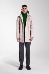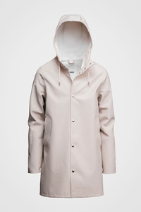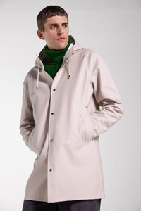 Stockholm, our home and your essential wardrobe staple is a straight-fit raincoat in sturdy and hard-wearing waterproof fabric. Expertly made, it’s tailored with double-welded seams for complete protection against the rain. The drawstring hood and under-arm eyelets add ease of movement and comfort in uncomfortable weather. The model is 187 cm / 6' 2" Wearing → SIZE M GARMENT DETAILS • Heavy-weight 530-gram fabric weight • Completely waterproof • Straight unisex fit • Snap metal button closures • Drawstring hood • Open welt pockets • Double welded seams • Under-arm eyelets for ventilation • +20 000 mm water column pressure • Designed in Stockholm • Made in Europe MATERIAL Coating: 100% PVC rubberized coating Membrane: 52% cotton, 48% polyester Read more about our fabrics