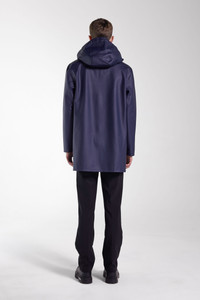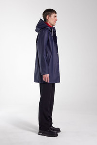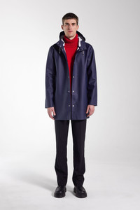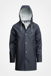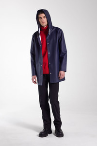 Stockholm, our home and your essential wardrobe staple is a straight-fit raincoat in sturdy and hard-wearing waterproof fabric. Expertly made, it’s tailored with double-welded seams for complete protection against the rain. The drawstring hood and under-arm eyelets add ease of movement and comfort in uncomfortable weather. The model is 187 cm / 6' 2" Wearing → SIZE M GARMENT DETAILS • Heavy-weight 530-gram fabric weight • Completely waterproof • Straight unisex fit • Snap metal button closures • Drawstring hood • Open welt pockets • Double welded seams • Under-arm eyelets for ventilation • +20 000 mm water column pressure • Designed in Stockholm • Made in Europe MATERIAL Coating: 100% PVC rubberized coating Membrane: 52% cotton, 48% polyester Read more about our fabrics