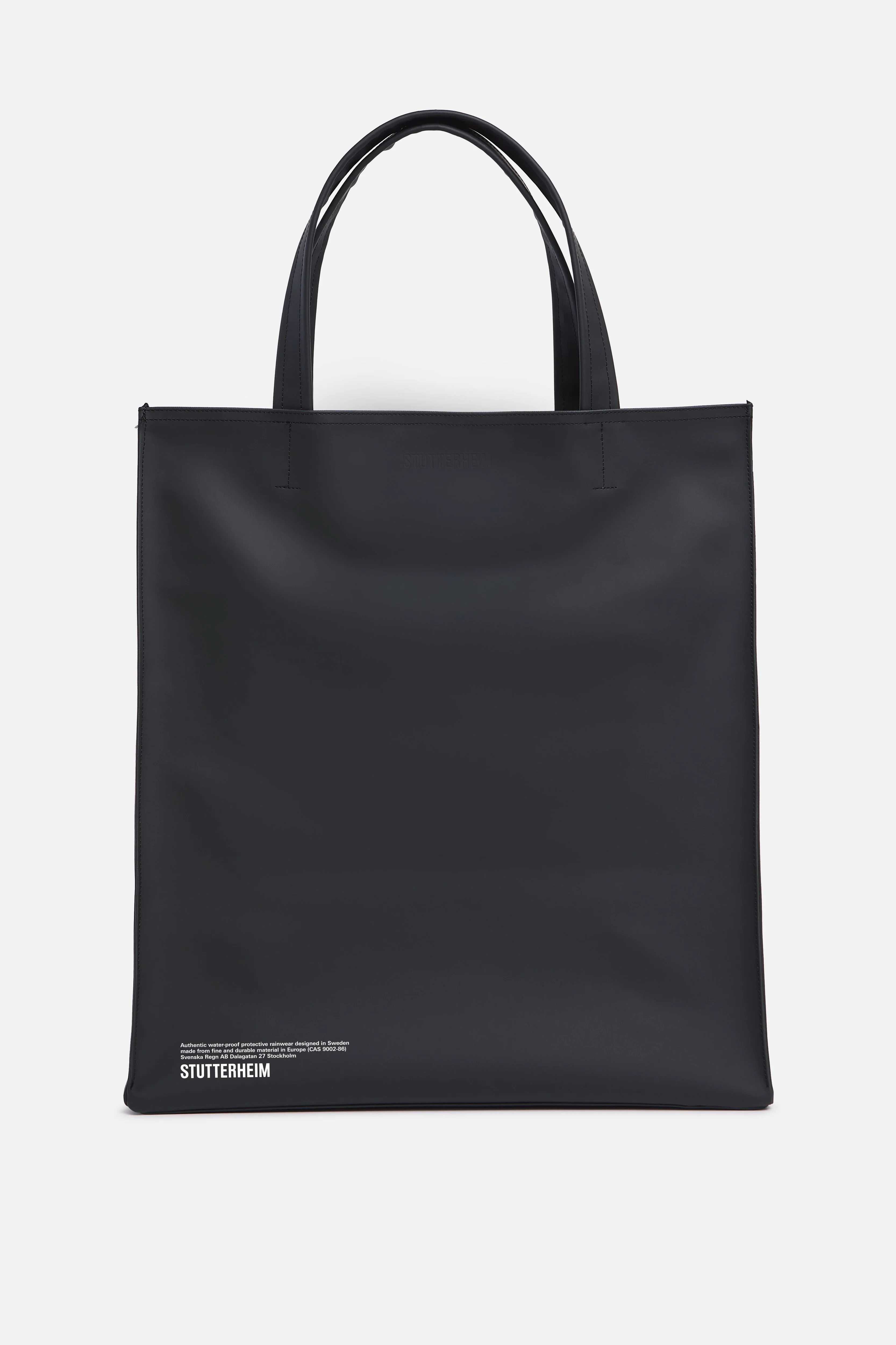 Stylist is an extra large tote bag crafted in dense and sturdy waterproof fabric, sized to fit many items, such as groceries, gym clothes, shopping etc. This elegant, rectangular piece can be carried by hand or worn over the shoulder with generously-sized top handles. A magnetic snap button at the top opening keeps belongings safe while the Cordura membrane ensures durability. GARMENT DETAILS • Heavyweight 1200-gram fabric • Completely waterproof • Durable Cordura membrane • Magnetic metal snap button fastening • Large top handles • Contrast colour printed logo at centre-front • Debossed logo at centre-top • Printed logo label inside • +20 000 mm water column pressure • Height: 45 cm / 17.7″ • Width: 40 cm / 15.7″ • Depth: 17.5 cm / 6.9″ • Designed in Stockholm • Made in Europe MATERIAL Coating: 100% PVC rubberized coating Membrane: 100% polyester Read more about our fabrics