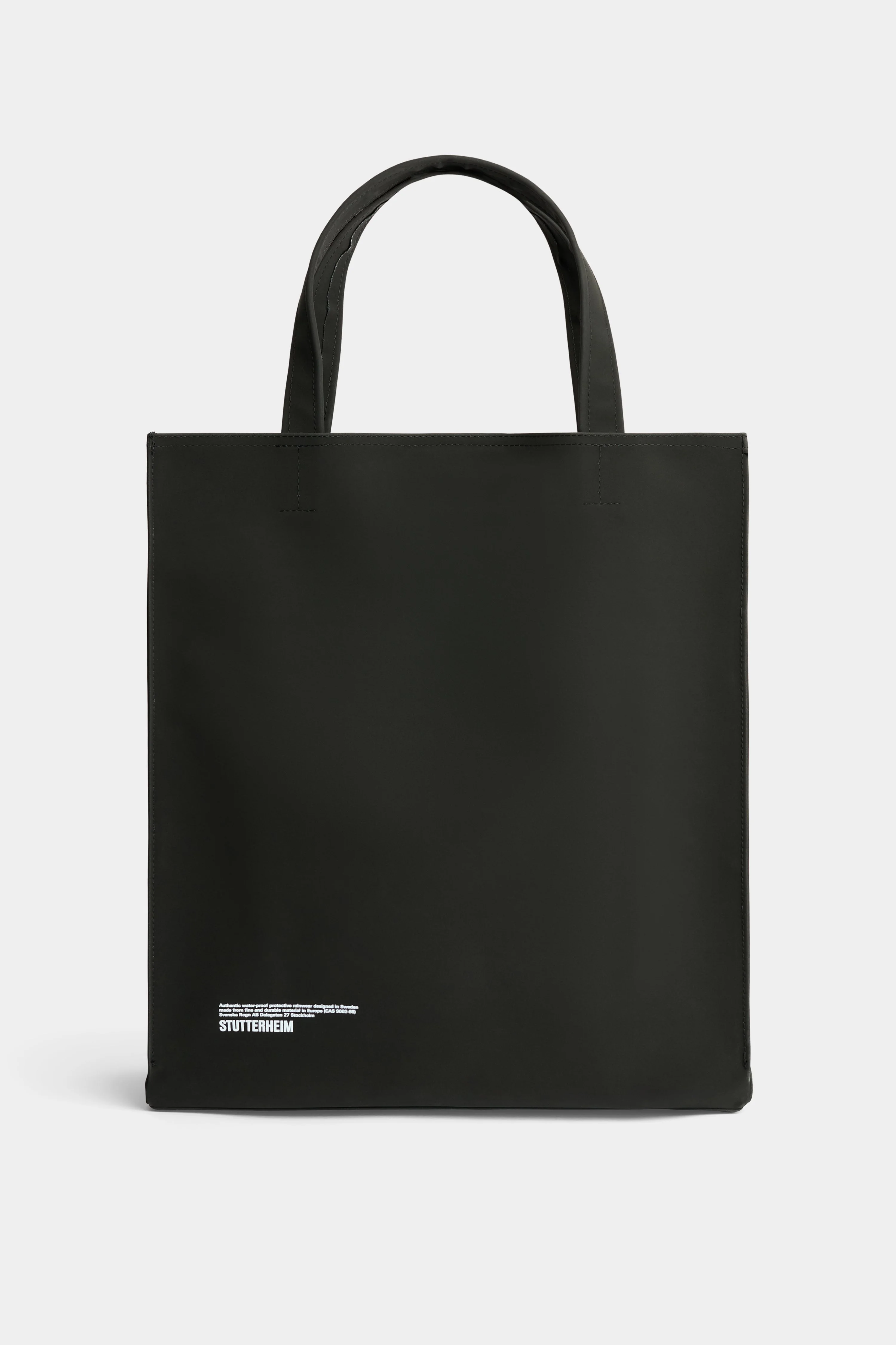 Stylist Matte is an extra large tote bag crafted in dense and sturdy waterproof fabric with a matte-textured finish, sized to fit many items, such as groceries, gym clothes, shopping etc. This elegant, rectangular piece can be carried by hand or worn over the shoulder with generously sized top handles. A magnetic snap button at the top opening keeps belongings safe while the Cordura membrane ensures durability. GARMENT DETAILS • Heavyweight 1200-gram fabric • Matte-textured finish • Completely waterproof • Durable Cordura membrane • Magnetic metal snap button fastening • Large top handles • Contrast colour printed logo at centre-front • Debossed logo at centre-top • Printed logo label inside • +20 000 mm water column pressure • Height: 45 cm / 17.7″ • Width: 40 cm / 15.7″ • Depth: 17.5 cm / 6.9″ • Designed in Stockholm • Made in Europe MATERIAL Coating: 100% PVC rubberized coating Membrane: 100% Polyester Read more about our fabrics