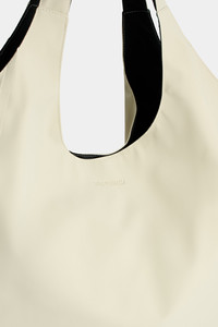 Svea Puffer Bag is a generously sized padded carry-all, suitable for everything from your weekly food shop to laundry runs, as a gym bag or even to pack for a weekend trip. Made in sturdy, hard-wearing waterproof fabric and constructed with double-welded seams, no moisture can get through to your belongings and the padding adds a layer of cushioned protection. The fleece-lined handles fit comfortably over the shoulder or in the hand while the inside zipped pocket secures small items or valuables. GARMENT DETAILS - Heavyweight 530-gram fabric - 150-gram technical insulator filling - Black cotton lining - Fleece-lined comfort grip handle - Double welded seams - Inside zip pocket - Inside phone pocket - Snap metal button closure - Debossed logo on front - Handles fit over shoulder or in hand - Height: 49 cm / 19" - Width: 62 cm / 24" - Designed in Stockholm - Made in Europe MATERIAL 100% PVC rubberized coating Membrane: 52% cotton, 48% polyester Lining: 70% cotton, 30% polyester Padding: 100% polyester with poly filling Read more about our fabrics