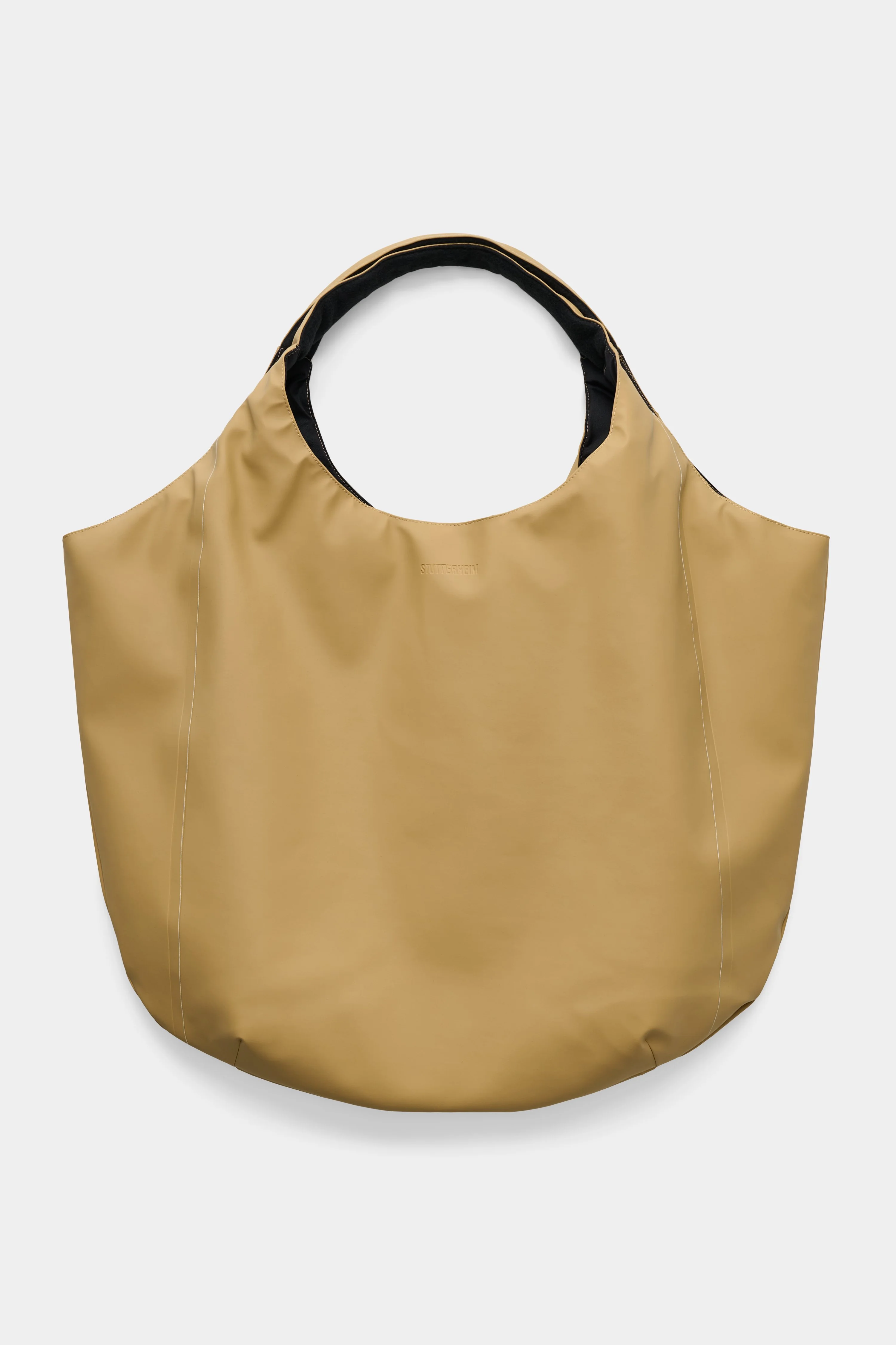 Svea Puffer Bag is a generously sized padded carry-all, suitable for everything from your weekly food shop to laundry runs, as a gym bag or even to pack for a weekend trip. Made in sturdy, hard-wearing waterproof fabric and constructed with double-welded seams, no moisture can get through to your belongings and the padding adds a layer of cushioned protection. The fleece-lined handles fit comfortably over the shoulder or in the hand while the inside zipped pocket secures small items or valuables. GARMENT DETAILS - Heavyweight 530-gram fabric - 150-gram technical insulator filling - Black cotton lining - Fleece-lined comfort grip handle - Double welded seams - Inside zip pocket - Inside phone pocket - Snap metal button closure - Debossed logo on front - Handles fit over shoulder or in hand - Height: 49 cm / 19" - Width: 62 cm / 24" - Designed in Stockholm - Made in Europe MATERIAL 100% PVC rubberized coating Membrane: 52% cotton, 48% polyester Lining: 70% cotton, 30% polyester Padding: 100% polyester with poly filling Read more about our fabrics