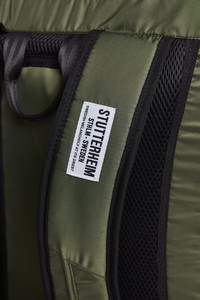 Inspired by military backpacks and designed for everyday practicality, Utility Day Backpack is a comfortable backpack in water-repellent nylon, with two large exterior front pockets suitable for carrying a water bottle or thermos flask. The padded adjustable shoulder straps and mesh back panel add comfort and breathability. The light-coloured interior lining makes contents easy to spot and aqua guard zippers ensure protection from moisture. GARMENT DETAILS - Water-repellent nylon - Double exterior zip pockets on front - Aqua guard zippers - Exterior rubber logo - Light-coloured interior lining - Padded laptop compartment with elasticated overlay strap - Interior pen and utility compartments - Padded adjustable shoulder straps - Mesh fabric on back panel - Buckle fastened chest strap - Logo lace pullers - STUTTERHEIM label on shoulder strap - Webbed top handle - Height: 45 cm / 17.7″ - Width: 40 cm / 15.7″ - Depth: 13 cm / 5.1″ - Volume: 9 L - Designed in Stockholm MATERIAL Shell material: 100% nylon Lining and padding: 100% polyester Details: rubber and metal Read more about our fabrics