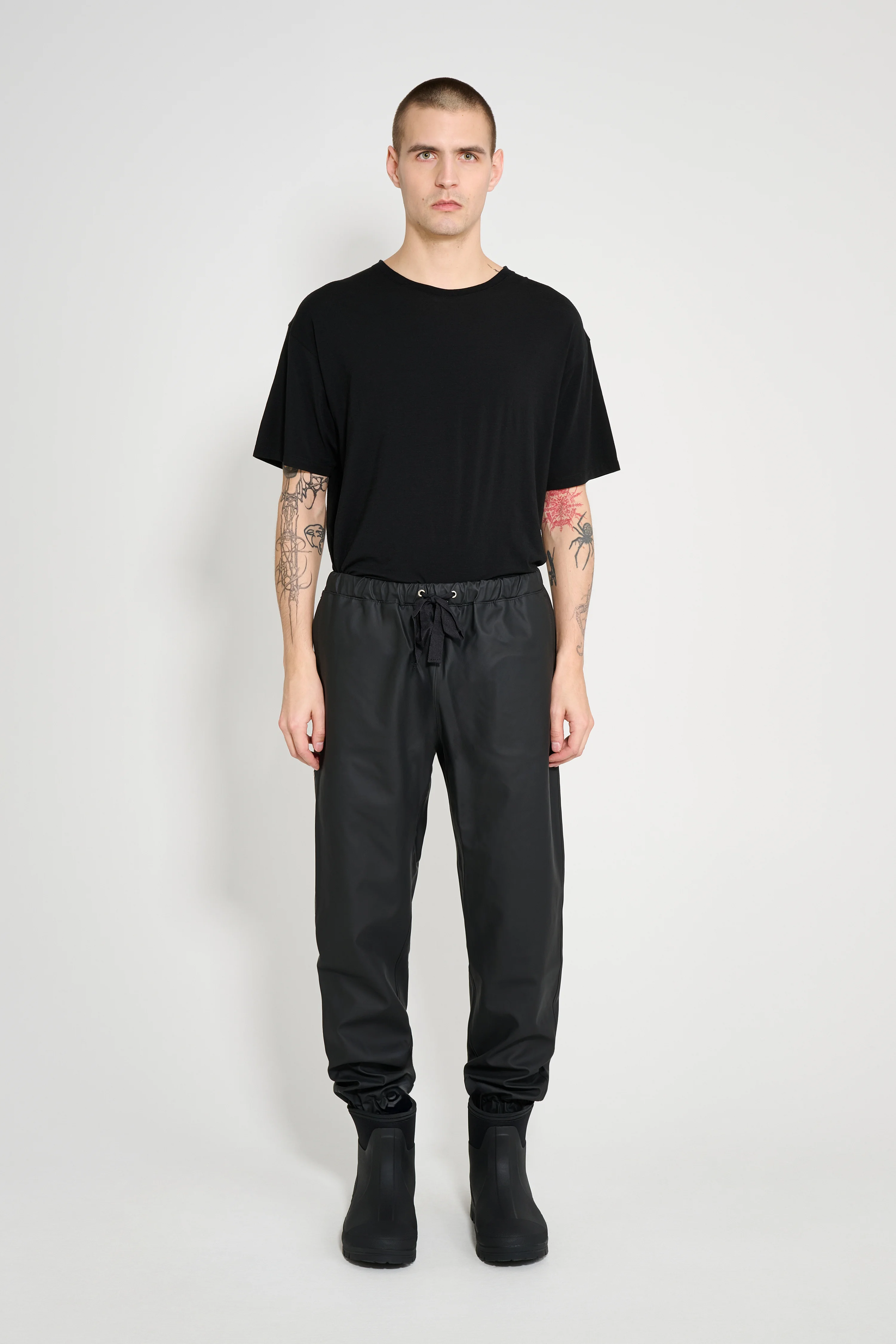 Vanadis are coverall trousers for men in light and airy waterproof fabric. Constructed with double-welded seams for complete rain protection, these trousers are perfect for cycling or other outdoor activities when the weather is wet. The elastic drawstring waist and bottom hems complete the relaxed fit and make the garment quick and easy to transition in and out of while providing ease of movement. Reflective stripes and eyelet punctures on each leg add visibility and breathability. The model is 187 cm / 6' 2" Wearing → SIZE M GARMENT DETAILS - Lightweight 230-gram fabric - Double-welded seams - Drawstring elastic waist - Elastic bottom hems - Reflective stripe on back of each leg for visibility - Eyelet puncture on each leg for ventilation - Side welt pockets - Single back welt pocket - +20 000 mm water column pressure - Designed in Stockholm - Made in Europe MATERIAL Coating: 100% PVC rubberized coating Membrane: 100% polyester Read more about our fabrics
