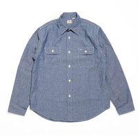 - The chambray shirt is the must item for American casual style. - This shirt is based on vintage products from the 1950s and is a durable shirt unique to workwear made with rolled-seam sewing on the 3-needle stitch sewing machine. - Pocket: Pocket with flap on both chests (The left pocket has a pen holder) - 100% Cotton - Made in Japan - Model Wearing Size: L (Height 180cm / Weight72kg)