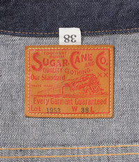 Sugar Cane's 1953 Model denim jacket is a faithful reproduction of Type II jackets from that era, a classic symbol of Americana that evolved from denim workwear blouse jackets. Popularized in the 50s by The King himself, Elvis Presely, and cemented as a menswear icon by Martin Sheen in the 70s, these jackets feature a boxy silhouette, two large front pockets, enamel coated buttons, and waist adjusters. Cut from a Sugar Cane original 14.25oz Japanese selvedge denim, developed as a reproduction of vintage 14oz selvedge denims from the 1960s and earlier. - 100% cotton - 1953 Type II Model - 14.25oz Japanese selvedge denim - Classic boxy silhouette - Two chest pockets - Enamel coated iron buttons - Copper rivets - Waist adjusters - Sheepskin leather patch - Double needle chainstitch construction - Made in Japan