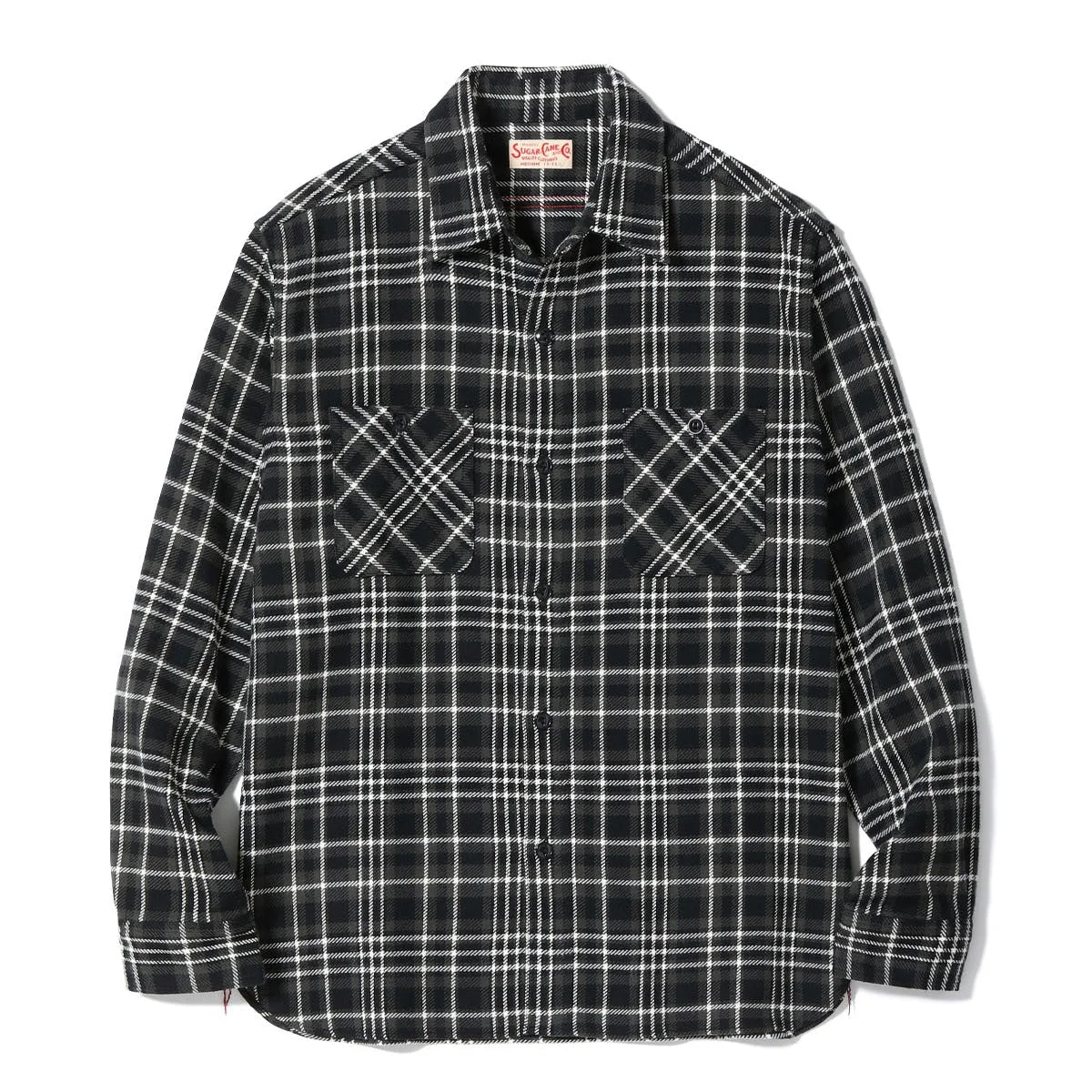 This workshirt is designed as a reproduction of vintage 1950s and 60s plaid shirts from Sugar Cane's archive, specifically based off of a vintage 1960s St. Moritz wool shirt, now reproduced by Sugar Cane in a cotton alternative with a classic twill plaid. Finished with dual chest pockets, black cat's eye urea buttons, and double-needle chainstitch construction. - 100% cotton - Japanese unbrushed plaid flannel - Three warp and three weft colours - Classic workshirt silhouette - Two open chest pockets - Black cat's eye urea buttons - Double needle chainstitch construction - Made in Japan Size up from your usual size