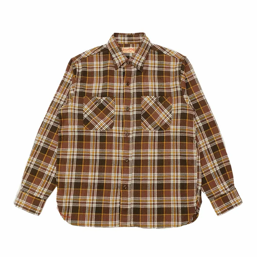 - A 1960s-style American plaid inspired by BRENT work shirts. Woven with four warp and four weft colors, using a combination of blue, brown, and green. The color placement also references vintage BIG YANK and BIG MAC shirts. - 100% Cotton - Made in Japan - Model Wearing Size: S (Height 170cm / Weight52kg)