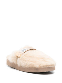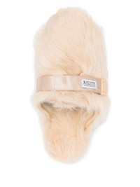 shearling slippers Highlights - Light beige - Slip-on style - Flat rubber sole - Logo patch to the front - Round toe Imported Composition Sole: Rubber 100% Lining: Fabric 100% Outer: Acrylic 100%, Polyester 100%, Nylon 100%