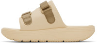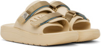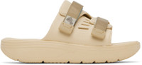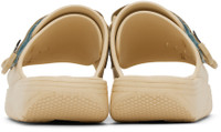 EVA rubber slip-on sandals in beige. · Open round toe · Adjustable velcro straps and perforated detailing at vamp · Logo flag at outer side · Molded EVA foam rubber footbed · Treaded EVA rubber sole Supplier color: Khaki/Beige
