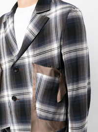asymmetric plaid-check blazer This blazer by sulvam references the brand's affinity for deconstructed suiting and innovative silhouettes. Featuring a plaid check pattern, it boasts notch lapels, single-breasted button fastening and long sleeves. Frayed patch pockets, an asymmetric hem and raw-cut strips of contrasting fabric attached to the jacket give it its dissected appearance. Highlights - Navy blue/black/white - Plaid check pattern - Notched lapels - Front button fastening - Long sleeves - Two patch pockets - Asymmetric hem Imported Composition Body: Rayon 95%, Silk 5% Lining: Cupro 100% SIZE & FIT Model measurements Height 6 ft 2 in(1.87 m) Bust/Chest 34.25 in(87 cm) Hips 36.22 in(92 cm) Waist 29.52 in(75 cm) FittingInformation Designed to be unstructured, offering a loose fit throughout Cropped in length Made from a midweight non-stretch fabric This piece fits true to size – take your usual size