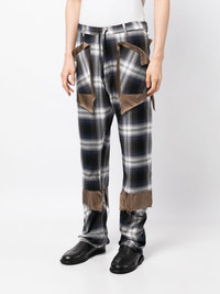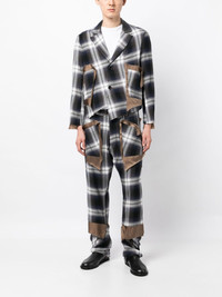 check-print asymmetric trousers Highlights - Blue/brown/multicolour - Check print - Patchwork design - Asymmetric design - Drawstring fastening - Cut-out detailing - Belt loops - Frayed detailing Imported Composition Body: Rayon 95%, Silk 5% Lining: Cupro 100% SIZE & FIT Model measurements Height 6 ft 2 in(1.87 m) Bust/Chest 34.25 in(87 cm) Hips 36.22 in(92 cm) Waist 29.52 in(75 cm) FittingInformation Designed for a tapered leg, offering a loose unrestricted fit over the leg with a closer fit towards the ankle Adjust this piece’s waistband to your preference using the drawstring Made from a midweight non-stretch fabric This piece fits true to size – take your usual size Washing instructions Dry Clean Only