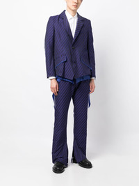 diagonal-striped straight-leg trousers Highlights - Purple - Diagonal stripe pattern - Belt loops - Two side inset pockets - Two rear welt pockets - Straight leg - Front button and zip fastening Imported Composition Body: Polycotton 56%, Polyester 44% Lining: Cupro 100% SIZE & FIT Model measurements Height 6 ft 2 in(1.87 m) Bust/Chest 34.25 in(87 cm) Hips 36.22 in(92 cm) Waist 29.52 in(75 cm) FittingInformation Designed for a straight-leg, allowing for an unrestricted and comfortable fit over the leg Made from a midweight non-stretch fabric This piece fits true to size – take your usual size