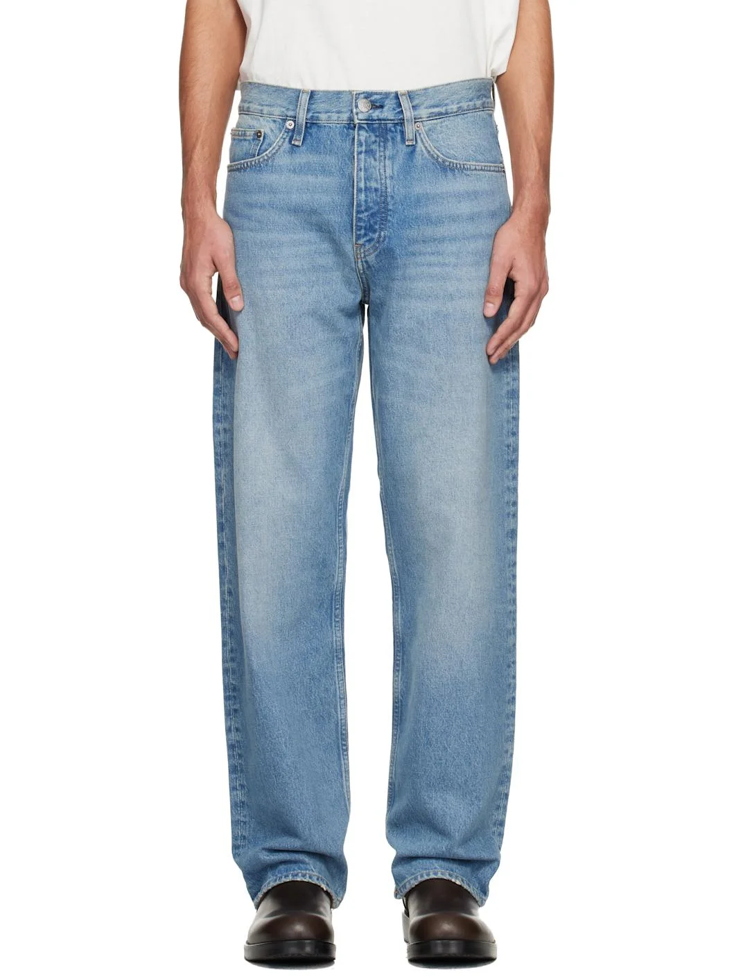 Non-stretch organic cotton jeans. · Fading, whiskering, and distressing throughout · Mid-rise · Belt loops · Five-pocket styling · Button fly · Leather logo patch at back waist · Logo-engraved silver-tone hardware · Contrast stitching in tan Supplier color: Natural vintage 100% organic cotton. Made in Tunisia 261468M186021