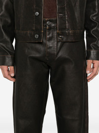 Loose trousers Highlights - Chocolate brown - Faux leather - Button fly fastening - Belt loops - Classic five pockets - Logo patch to the rear - Straight leg Made in Italy Composition Viscose 71%, Polyurethane 24%, Other fibres 5% SIZE & FIT Model measurements Height 6 ft 1 in(1.85 m) Bust/Chest 35.82 in(91 cm) Hips 37.79 in(96 cm) Waist 29.13 in(74 cm) FittingInformation Designed for a straight-leg, allowing for an unrestricted and comfortable fit over the leg Made from a midweight non-stretch fabric