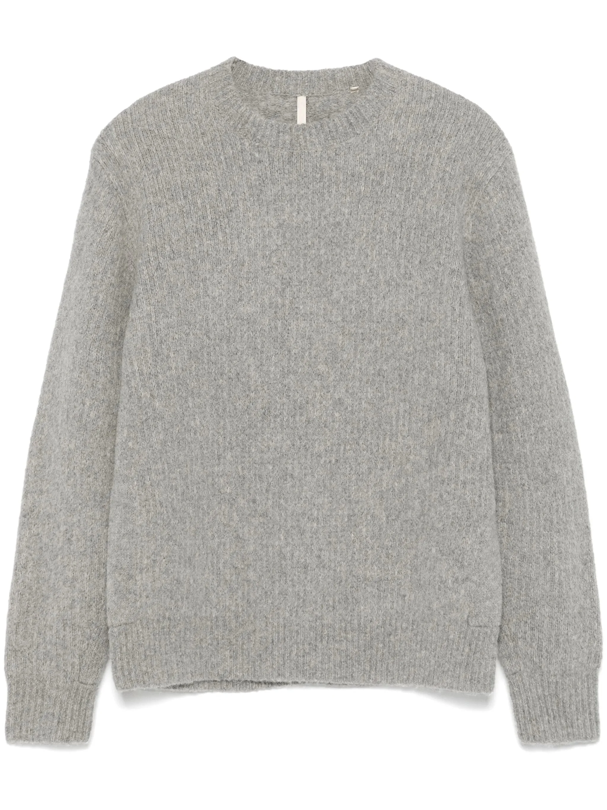 zen grey knitted construction brushed effect crew neck ribbed trim long sleeves straight hem - Color: GREY - Made in: Bulgaria - Designer Style ID: 3033 YAK GREYM Composition and care Polyamide: 22.0%, Yak: 31.0%, Alpaca: 31.0%, Merino: 16.0%
