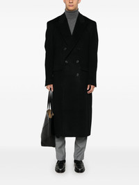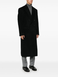 double-breasted coat Highlights - Black - Wool blend - Double-breasted button fastening - Peak lapels - Chest welt pocket - Shoulder pads - Long sleeves - Buttoned cuffs - Two side flap pockets - Central rear vent - Internal jetted pockets - Full lining - Straight hem Imported Composition Wool 65%, Polyamide 25%, Cashmere 10% SIZE & FIT Model measurements Height 6 ft 1 in(1.86 m) Bust/Chest 36.61 in(93 cm) Hips 37 in(94 cm) Waist 28.74 in(73 cm) FittingInformation Designed to be unstructured, offering a loose fit throughout The vented hem offers movement at the rear Made from a midweight non-stretch fabric