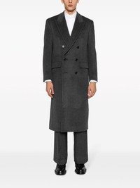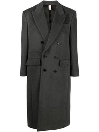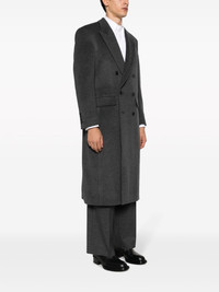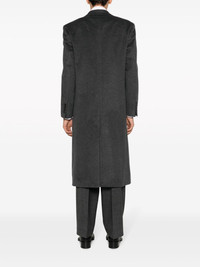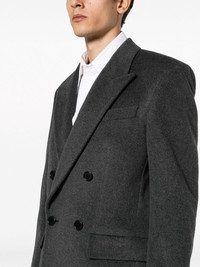 double-breasted wool blend midi coat Highlights - Anthracite grey - Wool-cashmere blend - Wide peak lapels - Double-breasted button fastening - Long sleeves - Buttoned cuffs - Chest welt pocket - Two front flap pockets - American rear vent - Straight hem - Mid-length Imported Composition Wool 65%, Polyamide 25%, Cashmere 10% SIZE & FIT Model measurements Height 6 ft 2 in(1.87 m) Bust/Chest 36.41 in(92.5 cm) Hips 35.43 in(90 cm) Waist 29.52 in(75 cm) FittingInformation Designed for a boxy fit, intended for a loose fit throughout The internal shoulder pads offer a structured shape Made from a midweight non-stretch fabric This piece fits true to size – take your usual size Washing instructions Dry Clean Only