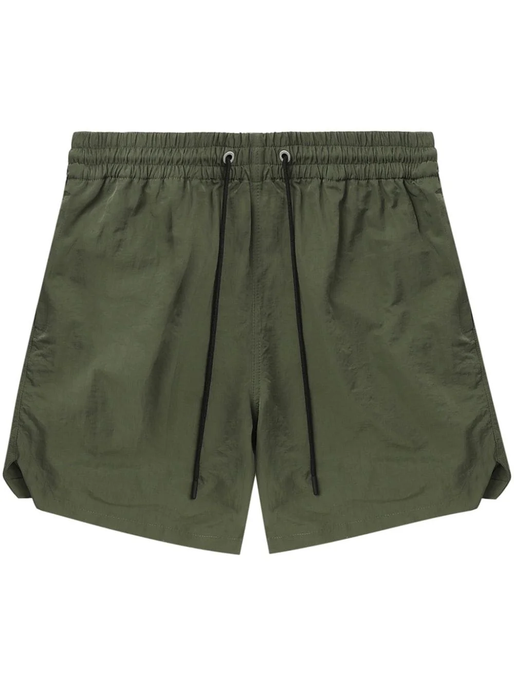 elasticated-waistband track shorts Highlights - Olive green - Elasticated drawstring waistband - Two side inset pockets - Rear zip-fastening pocket - Thigh-length Imported Composition Nylon 100%