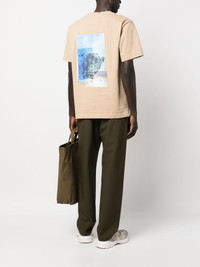 graphic-print organic-cotton T-shirt Highlights - Sand beige - Organic cotton - Embroidered logo at the chest - Graphic print to the rear - Round neck - Short sleeves - Straight hem Imported Composition Organic Cotton 100% SIZE & FIT Model measurements Height 6 ft 2 in(1.87 m) Bust/Chest 36.41 in(92.5 cm) Hips 37 in(94 cm) Waist 29.52 in(75 cm) FittingInformation Designed for a boxy fit, intended for a loose fit throughout Made from a midweight non-stretch fabric, this piece offers minimal elasticity when worn This piece fits true to size – take your usual size