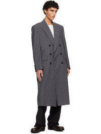 Plain-woven stretch virgin wool-blend coat. · Pinstripes throughout · Peaked lapel · Double-breasted button closure · Welt pocket at chest · Flap pockets at waist · Padded shoulders · Buttoned surgeon's cuffs · Central vent at back hem · Welt pockets at interior · Full twill lining Supplier color: Grey melange 53% recycled polyester, 43% virgin wool, 4% elastane. Made in Portugal 261468M176001