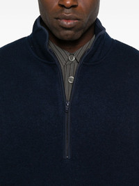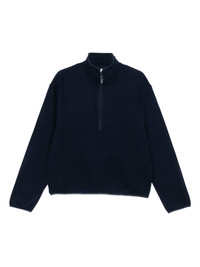 high-neck half-zip sweater Highlights Imported Composition Fabric 100% SIZE & FIT Model measurements Height 6 ft 0 in(1.84 m) Bust/Chest 35.82 in(91 cm) Hips 37 in(94 cm) Waist 28.34 in(72 cm)