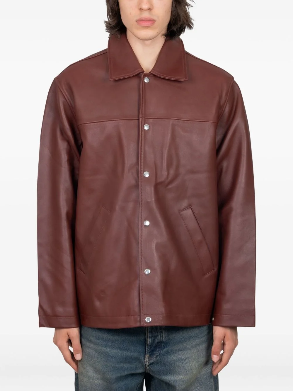 button-fastening leather jacket Highlights Imported Composition Leather 100%