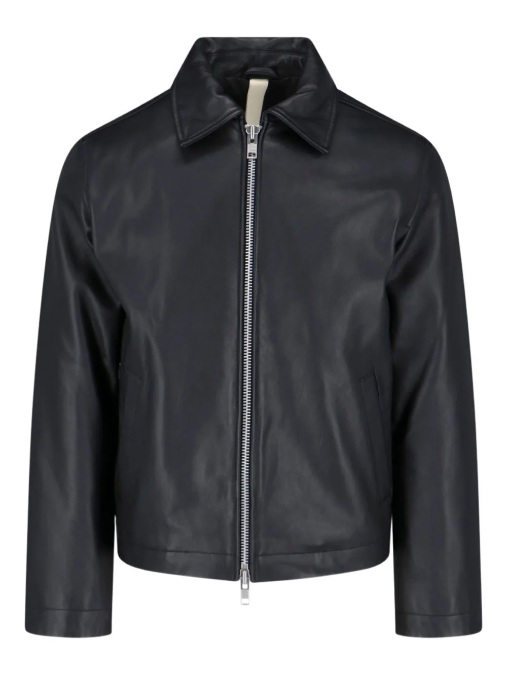 zip-front leather jacket Highlights - Black - Calf leather - Zip fastening - Collared neckline - Welt pockets Imported Composition Calf Leather 100% SIZE & FIT FittingInformation Designed for a slim fit, offering a comfortable fit that sits just away from the body Firm leather offering little flexibility to maintain its durability and sturdiness Washing instructions Specialist Cleaning