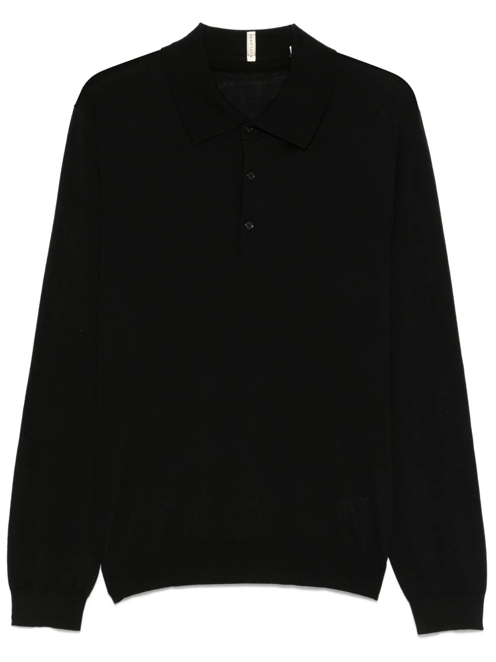 merino wool polo shirt Highlights - Black - Front button placket - Polo collar - Long sleeves Imported Composition Merino 100% SIZE & FIT Model measurements Height 6 ft 2 in(1.87 m) Bust/Chest 37.79 in(96 cm) Hips 37.79 in(96 cm) Waist 30.31 in(77 cm) FittingInformation Designed for a loose fit, this polo shirt offers additional room throughout The ribbed hem offers a close, comfortable fit Made with a lightweight knit, this piece offers some stretch