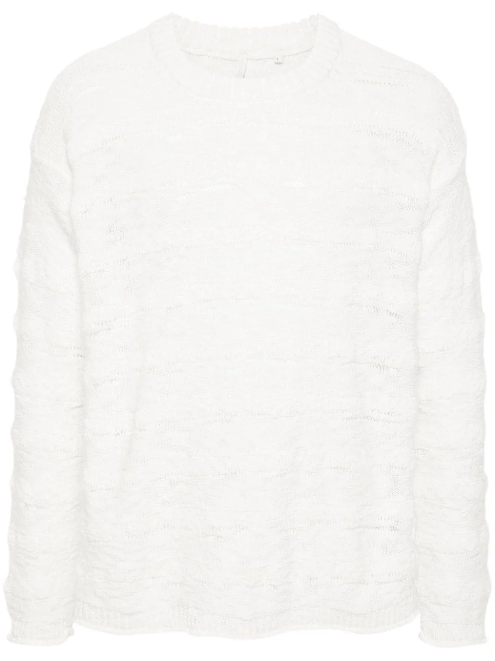 Repair crew-neck jumper Highlights - Ivory white - Cotton blend - Purl knit - Horizontal stripe pattern - Crew neck - Drop shoulder - Long sleeves - Ribbed cuffs and hem - Unlined Imported Composition Cotton 65%, Acrylic 35% SIZE & FIT Model measurements Height 6 ft 0 in(1.84 m) Bust/Chest 35.82 in(91 cm) Hips 37 in(94 cm) Waist 28.34 in(72 cm) FittingInformation Designed for a relaxed fit, this piece allows for comfort and movement when worn Made with a midweight knit, this piece offers some stretch This piece fits true to size – take your usual size Washing instructions Machine Wash