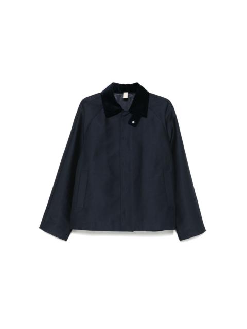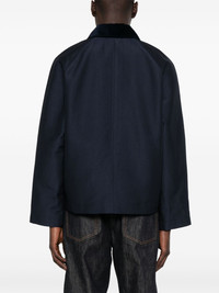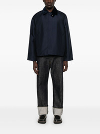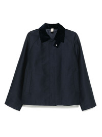 short raglan jacket Highlights - Navy blue - Concealed front press-stud fastening - Two side welt pockets - Contrasting collar Imported Composition Polyester 48%, Cotton 44%, Nylon 8% SIZE & FIT Model measurements Height 6 ft 0 in(1.84 m) Bust/Chest 37.79 in(96 cm) Hips 37 in(94 cm) Waist 31.49 in(80 cm) FittingInformation Designed to be unstructured, offering a loose fit throughout Made from a midweight non-stretch fabric