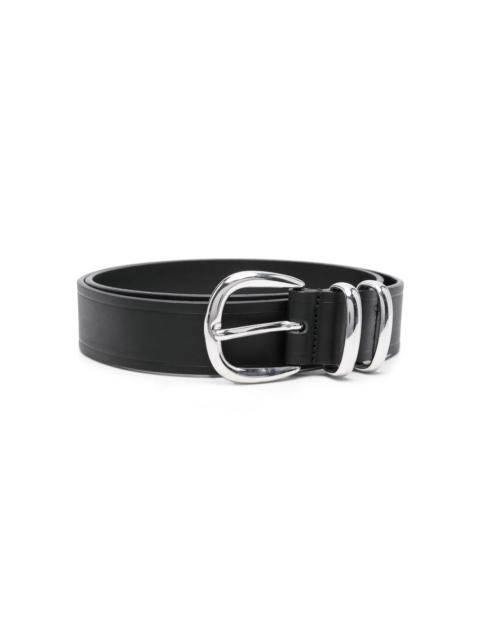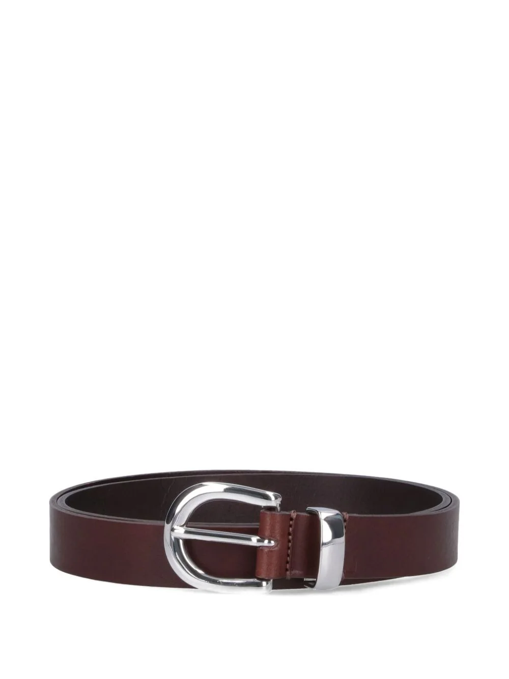 five-hole leather belt Highlights - Brown - Leather - Silver buckle - Pin buckle - Five holes Imported Composition Calf Leather 100%